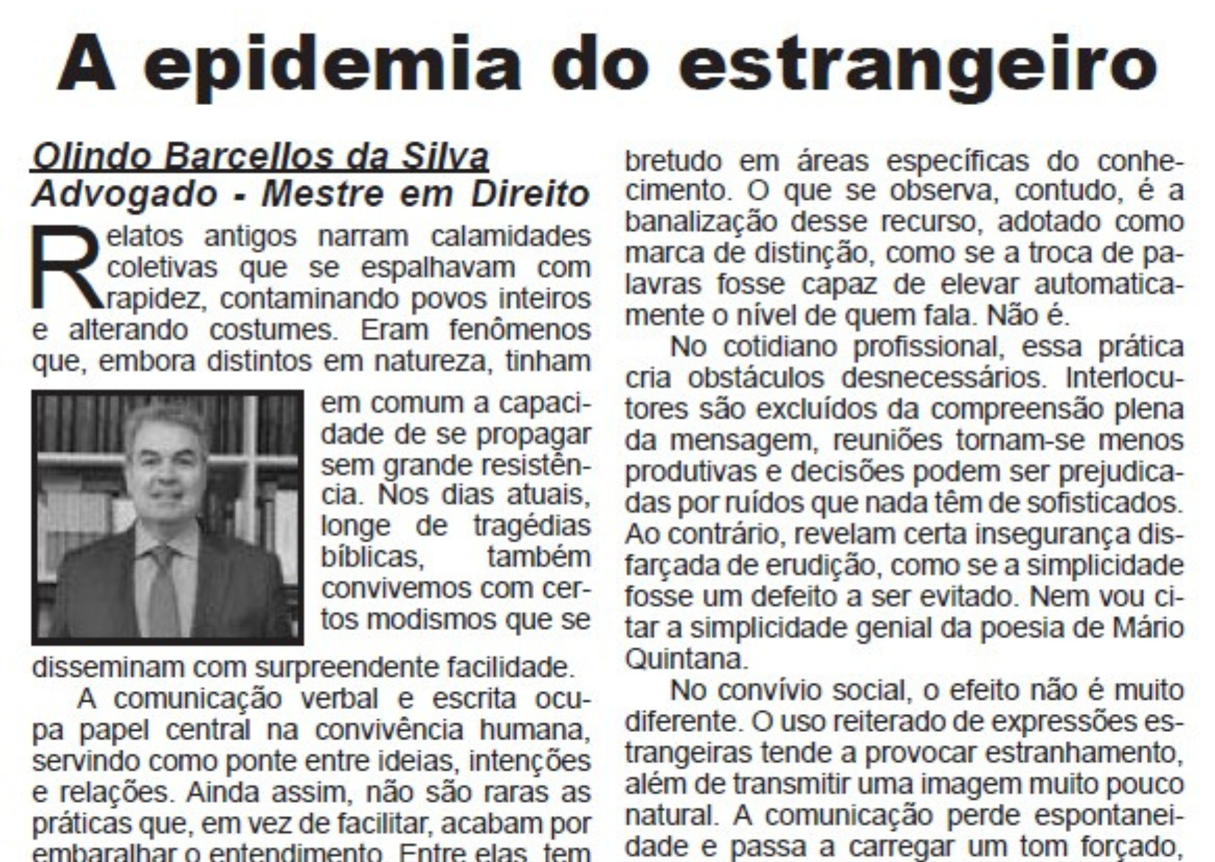 Novo artigo de nosso sócio diretor, Dr. Olindo Barcellos da Silva, publicado no Jornal Gazeta Mineira do dia 17/04/2026...