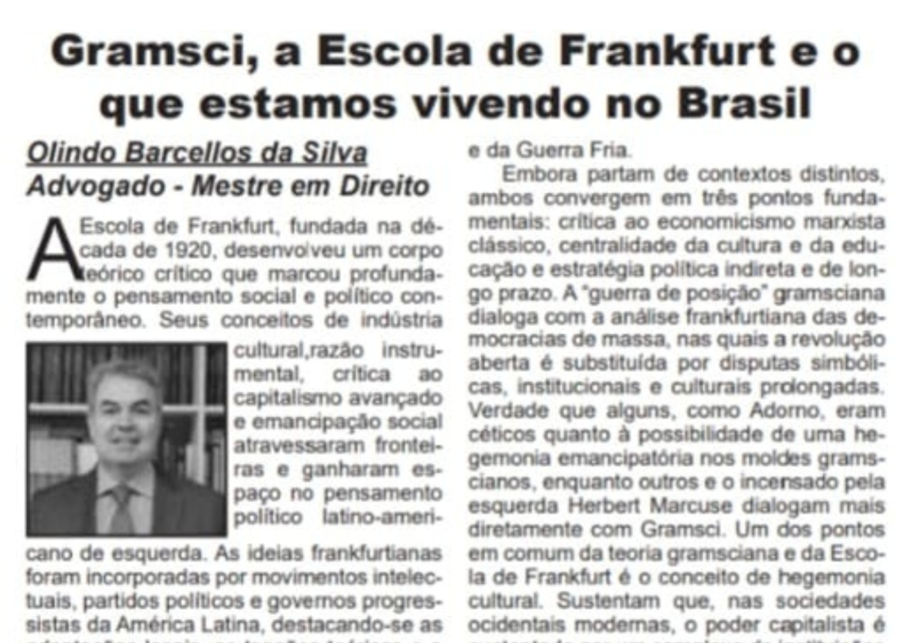 Novo artigo de nosso sócio diretor, Dr. Olindo Barcellos da Silva, publicado no Jornal Gazeta Mineira do dia 02/01/2026