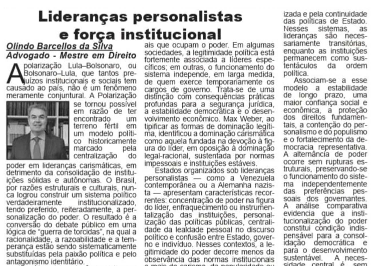 Novo artigo de nosso sócio diretor, Dr. Olindo Barcellos da Silva, publicado no Jornal Gazeta Mineira do dia 30/01/2026
